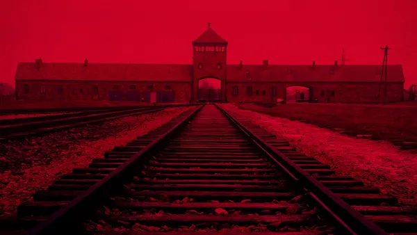 Rødt Filtrert Minne Og Museum Auschwitz Birkenau Bakgrunnsbilder -