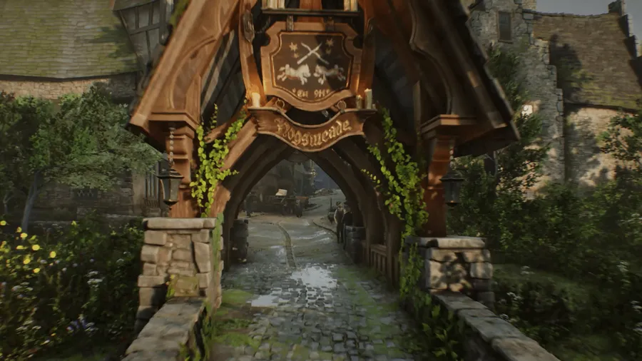 Dette Fortryllende Bildet Fanger Den Sjarmerende Essensen Av Hogsmeade Landsbyen I Skumringen, Med Den Varme Gløden Fra Butikkvinduene Som Lyser Opp De Snødekte Gatene Mens Besøkende Utforsker Den Eneste Trollmannslandsbyen I Storbritannia.
