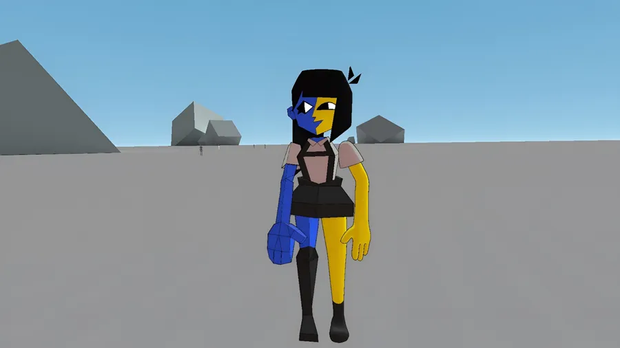 Ena Har Et Unikt Halv-blått, Halv-gult Fargevalg Med Et Futuristisk, Stilisert Utseende I Et Minimalistisk 3d-miljø.