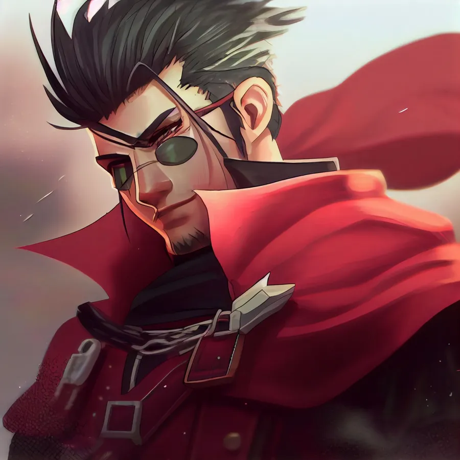 Illustrert Nærbilde Av Auron, Med Hans Signatur Røde Frakk, Mørke Solbriller Og Et Stoisk Uttrykk.