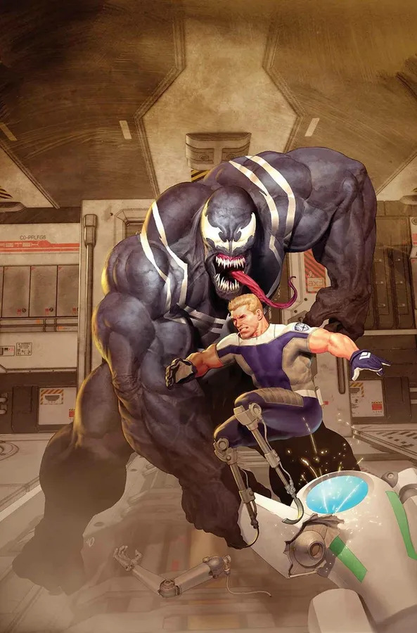 Et Høyoppløselig Bakgrunnsbilde Med Flash Thompson Iført Den Ikoniske Svarte Og Hvite Agent Venom-drakten, Klar Til Å Hoppe Inn I Aksjon Mot Ondskap. Utforsk Den Unike Personligheten Og De Kraftige Evnene Til Denne Fan-favorittkarakteren Fra Marvel-universet I Dette Visuelt Imponerende 989 X 1500 Bakgrunnsbildet.