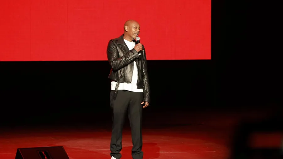 Dette Høyoppløselige Bildet Viser Den Anerkjente Komikeren, Dave Chappelle, Som Fanger Publikum Med Sin Unike Humor Og Kraftfulle Historiefortelling. Kledd I Sitt Signaturutstyr, Kommanderer Han Scenen Under Et Enslig Søkelys, Legemliggjør En Sann Komedilegende.