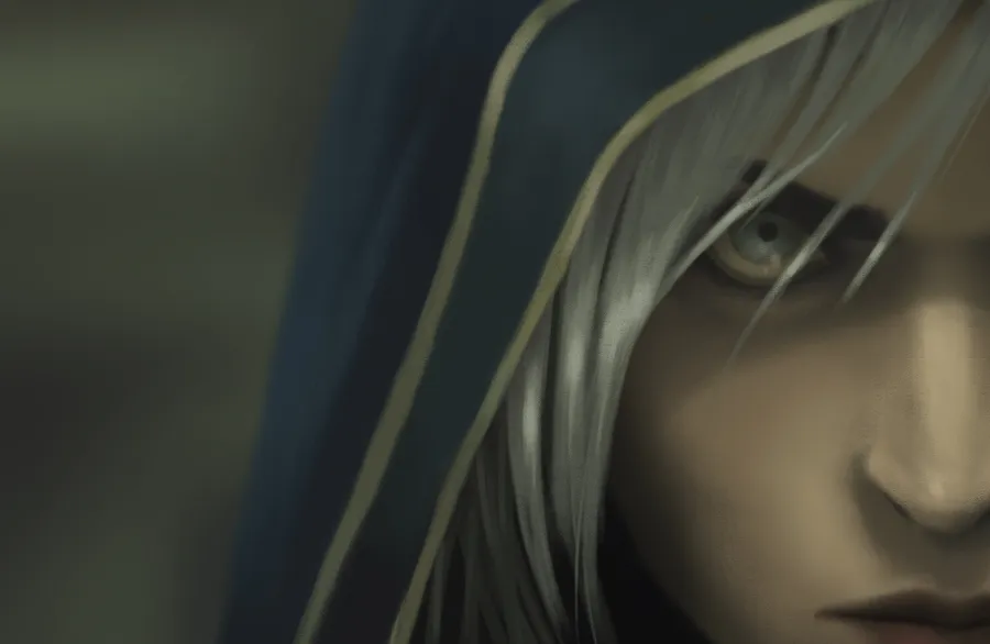 Nærbilde Av Jaina Proudmoore Med En Hette, Som Viser Hennes Intense Blikk Og Sølvfarget Hår.