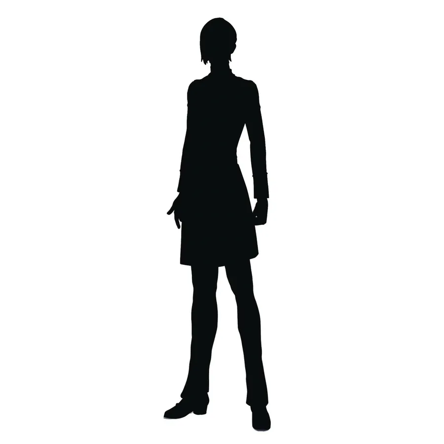 En Silhuett Av En Animekarakter Som Står Med En Lett Vending Til Siden, Med En Distinkt Frisyre Og Iført En Lang Frakk Og Bukser.