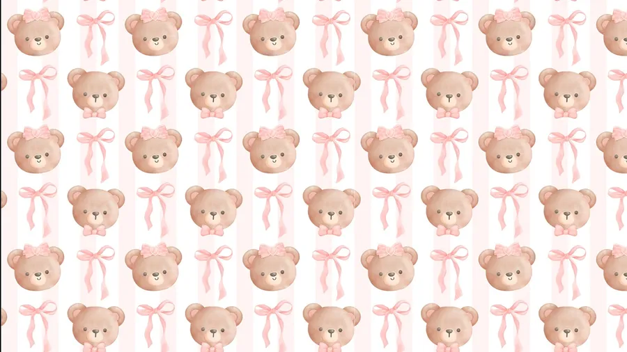 Myke Pastellrosa Sløyfer Og Søte Bjørneansikter Skaper En Sjarmerende Estetikk Perfekt For Barnerom Eller Søte Designprosjekter.
