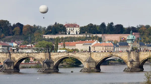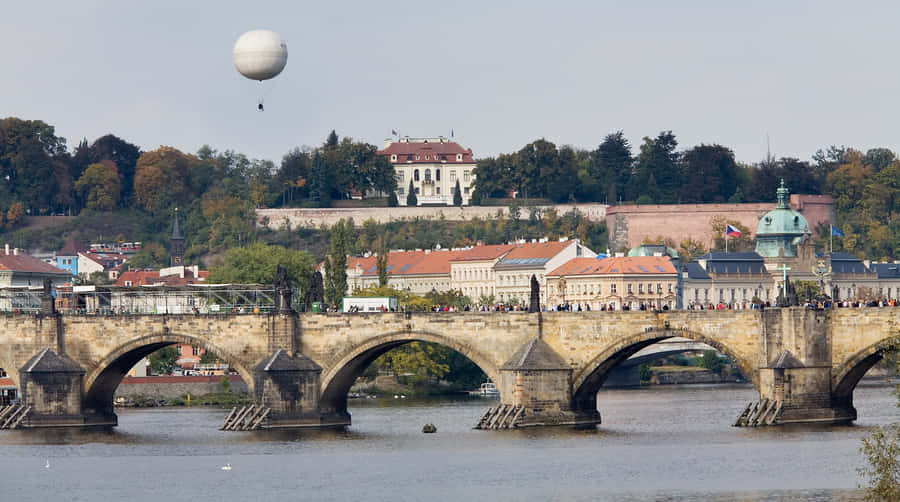 Fantastisk Utsikt Over Charles Bridge Med En Varmluftsballong I Himmelen Bakgrunnsbilder -