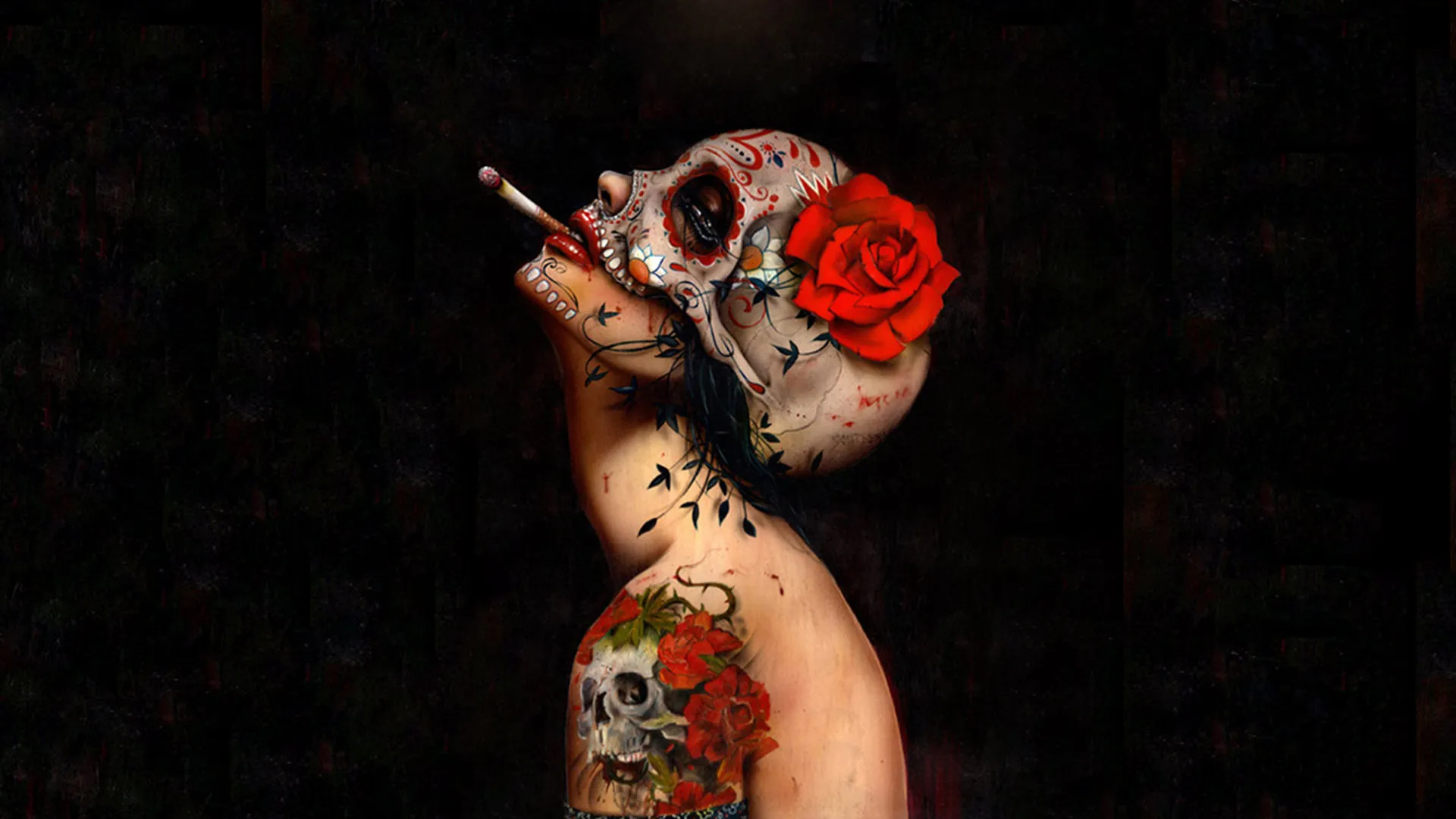 Et Edgy Utseende Med Chola Sukkerhodeskaller Bakgrunnsbilder -