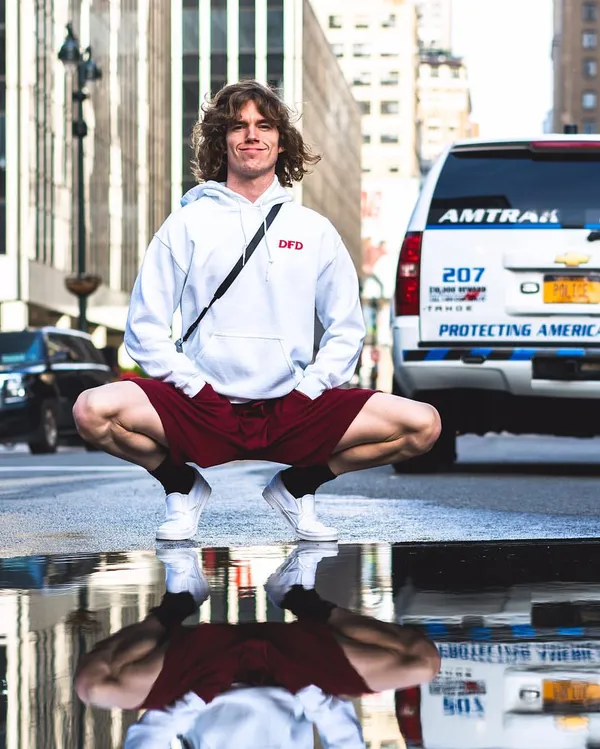 Den Amerikanske Kjendisen Danny Duncan Squatters Nær En Vanndam Bakgrunnsbilder -