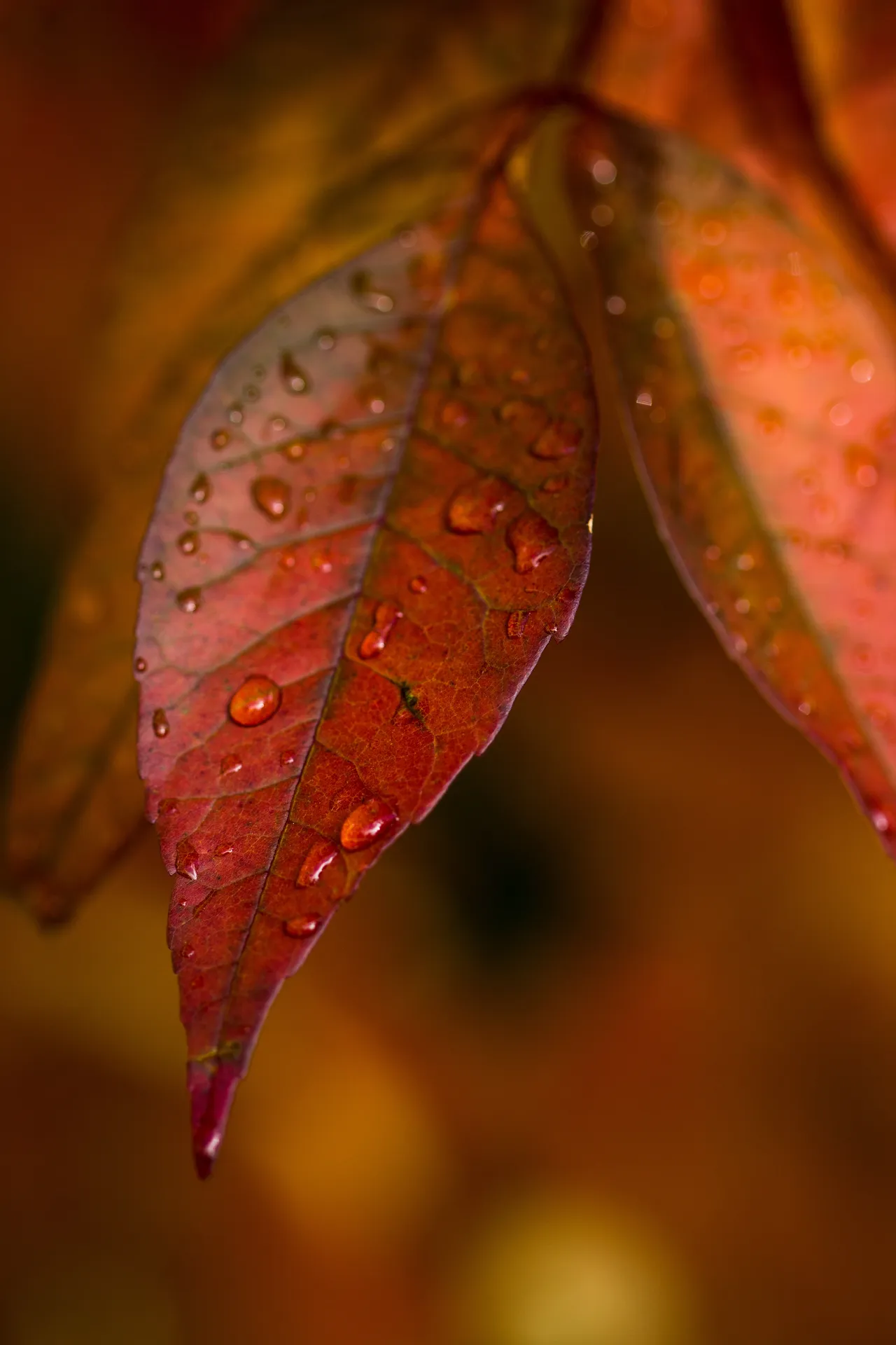 En Rolig Scene Med Regndråper Som Faller På Livlige Høstblader Bakgrunnsbilder -