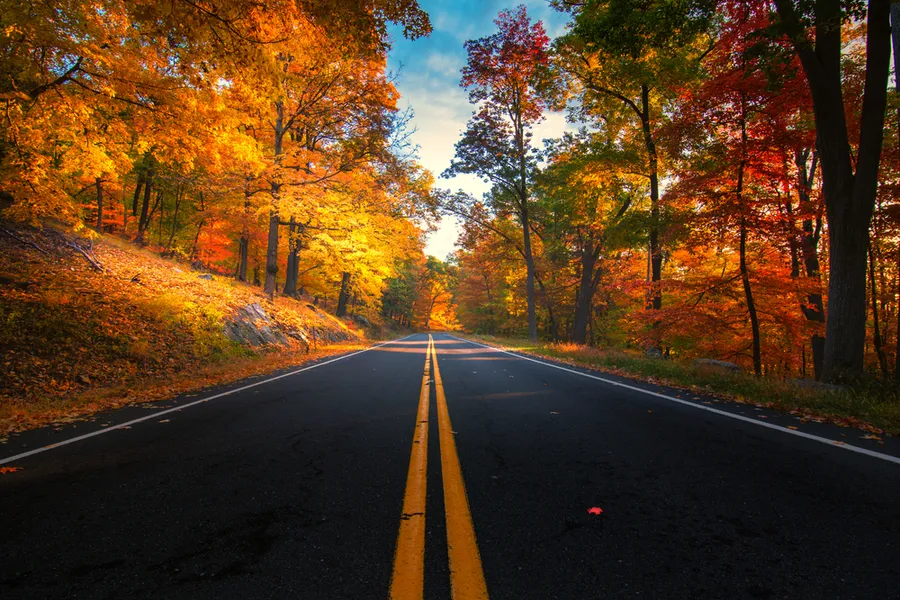 En Naturskjønn Kjøretur Gjennom Fall Road Bakgrunnsbilder -