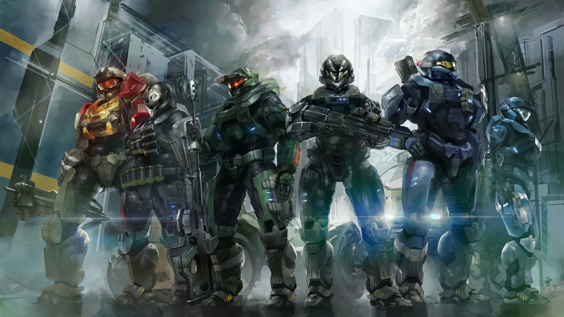 Noble Team Kjemper Mot Fiender I Dramatisk Sci-fi Verden Bakgrunnsbilder -