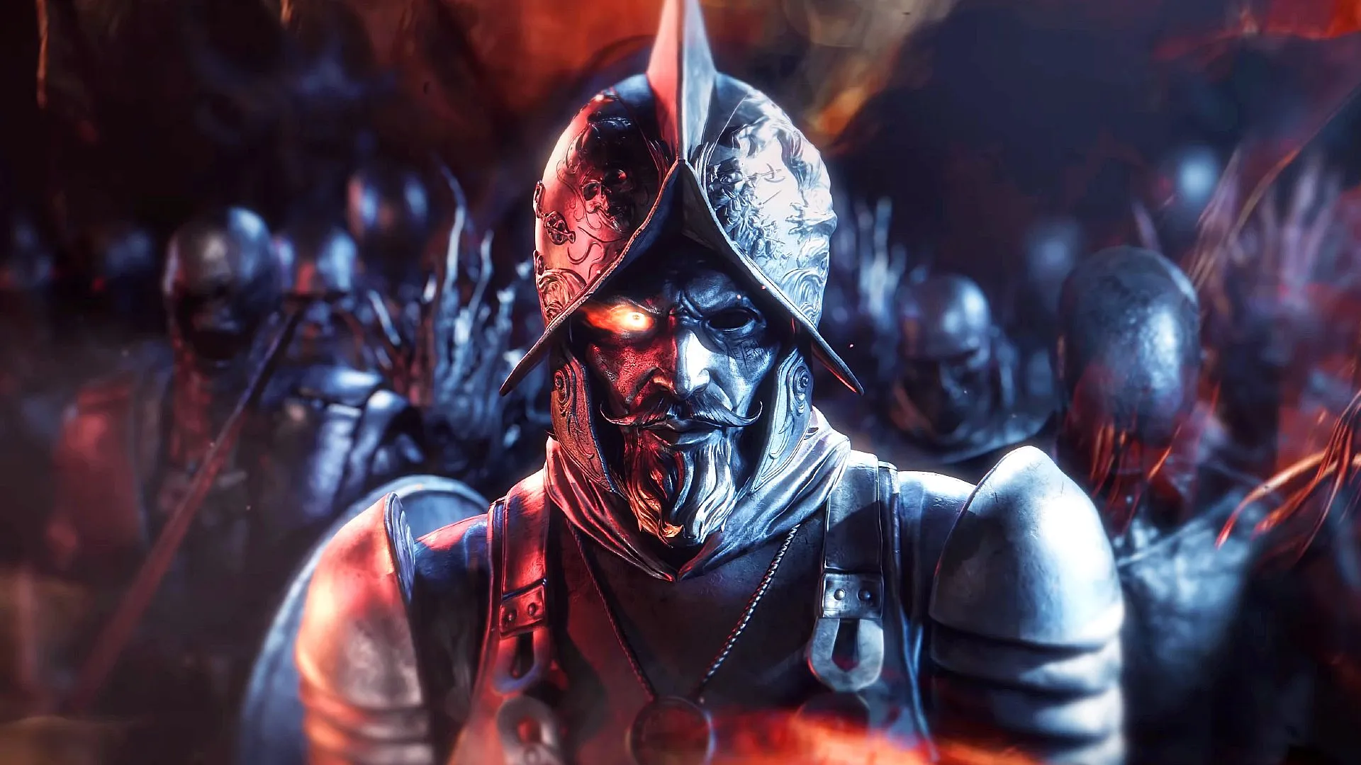 En Mørk Fantasykarakter Med Et Sverd Og En Kniv Bakgrunnsbilder -