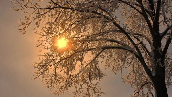 Enkel Vintertre Dekket Av Snøsol Bakgrunnsbilder -
