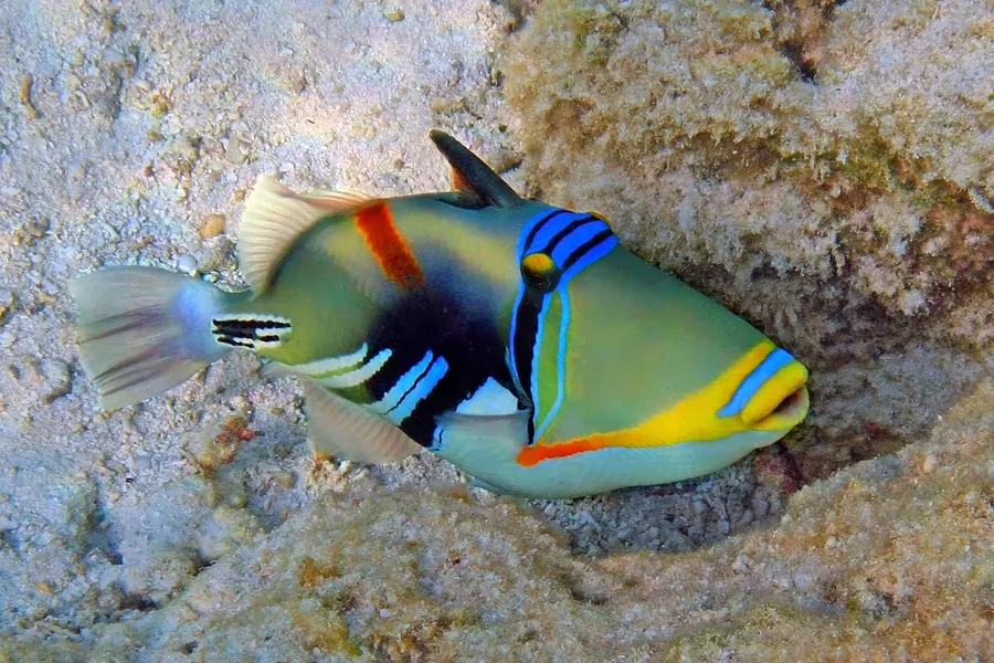 Fargerik Triggerfisk Svømmer Under Vann.jpg Bakgrunnsbilder -