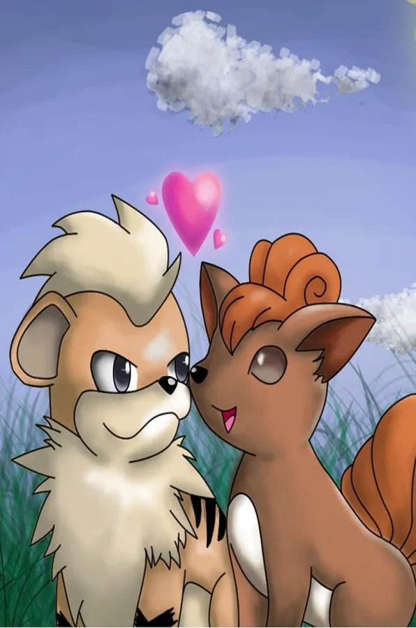 Vulpix Romantikk Med Growlithe Bakgrunnsbilder -